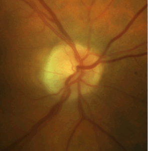 Figure 2. Disc edema OS demonstrating telangiectatic vessels.